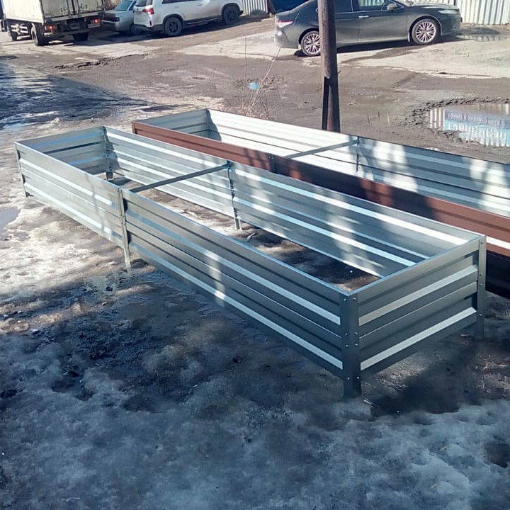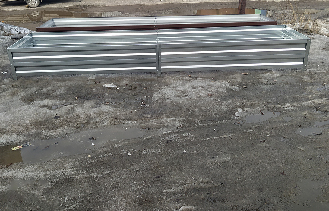 Грядки изготовлены из оцинкованного металла толщиной 0,5 мм.